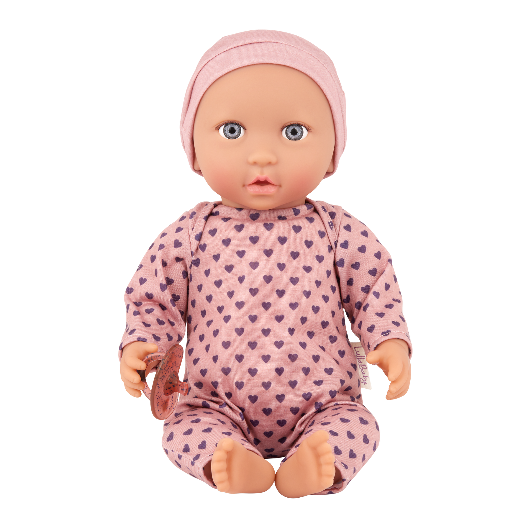Discover precious playtime moments with LullaBaby. This 36cm baby doll is made with realistic and friendly details to delight little ones during role-play. It has expressive grey eyes, sculpted hands and feet, and a cuddly soft body for little hugs. Plus, baby's heart-print pyjama, hat, and dummy let kids explore dress-up and gentle soothing. LullaBaby dolls are a must-have for parents looking to nurture imagination and inspire kindness at an early age. Makes a wonderful gift for kids ages 2 years old and up and a perfect first baby doll for toddlers. Safety tested to meet all regulatory phthalates and BPA requirements.